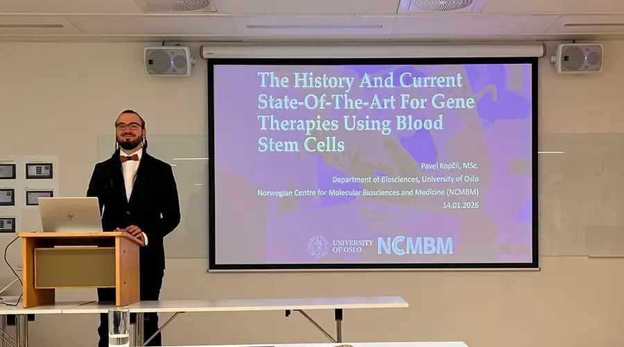 Part of the PhD defence involved a trial lecture on ‘The history and current state-of-the-art for gene therapies using blood stem cells’. You can read more about the disputation in UiO News.